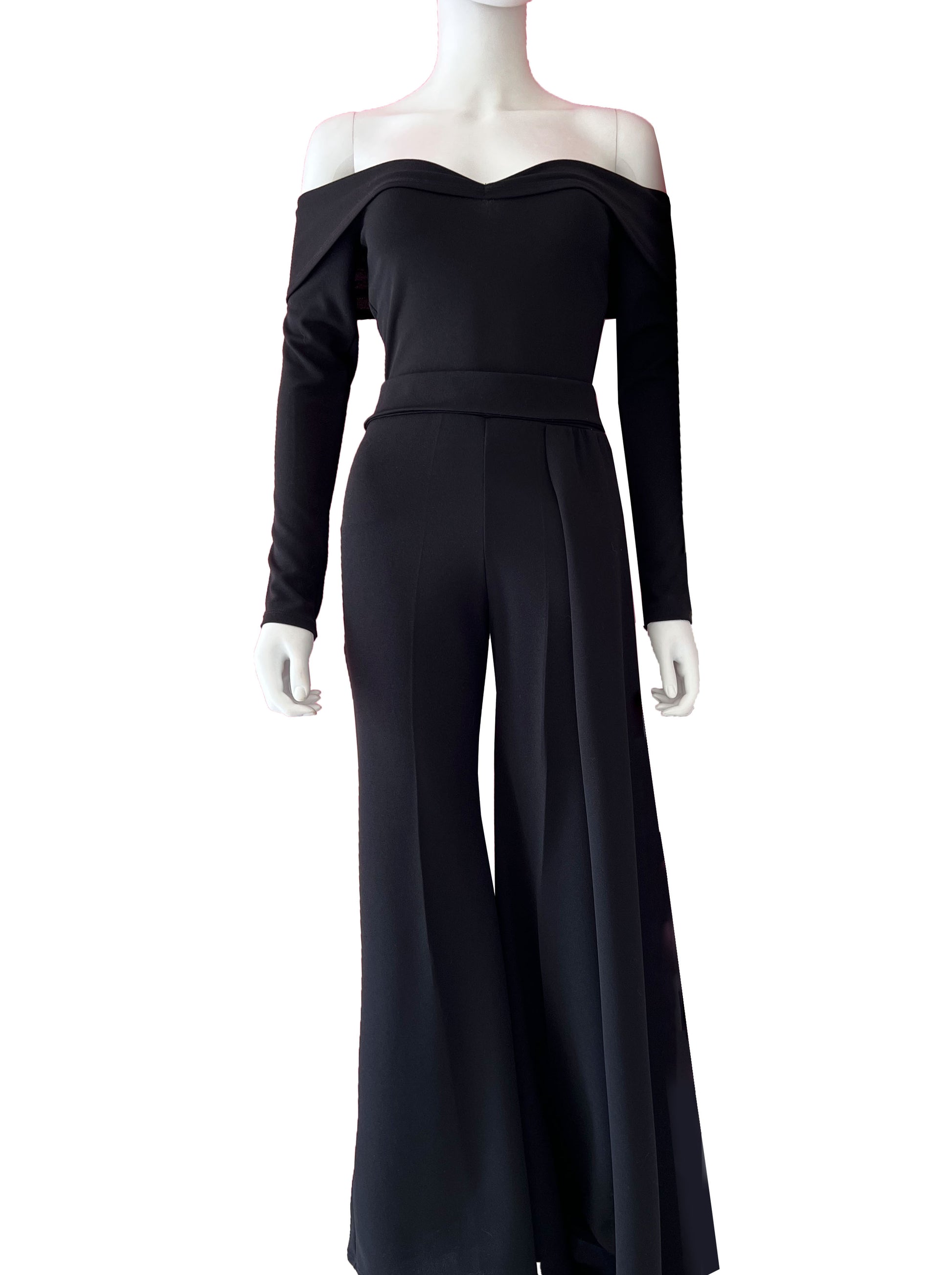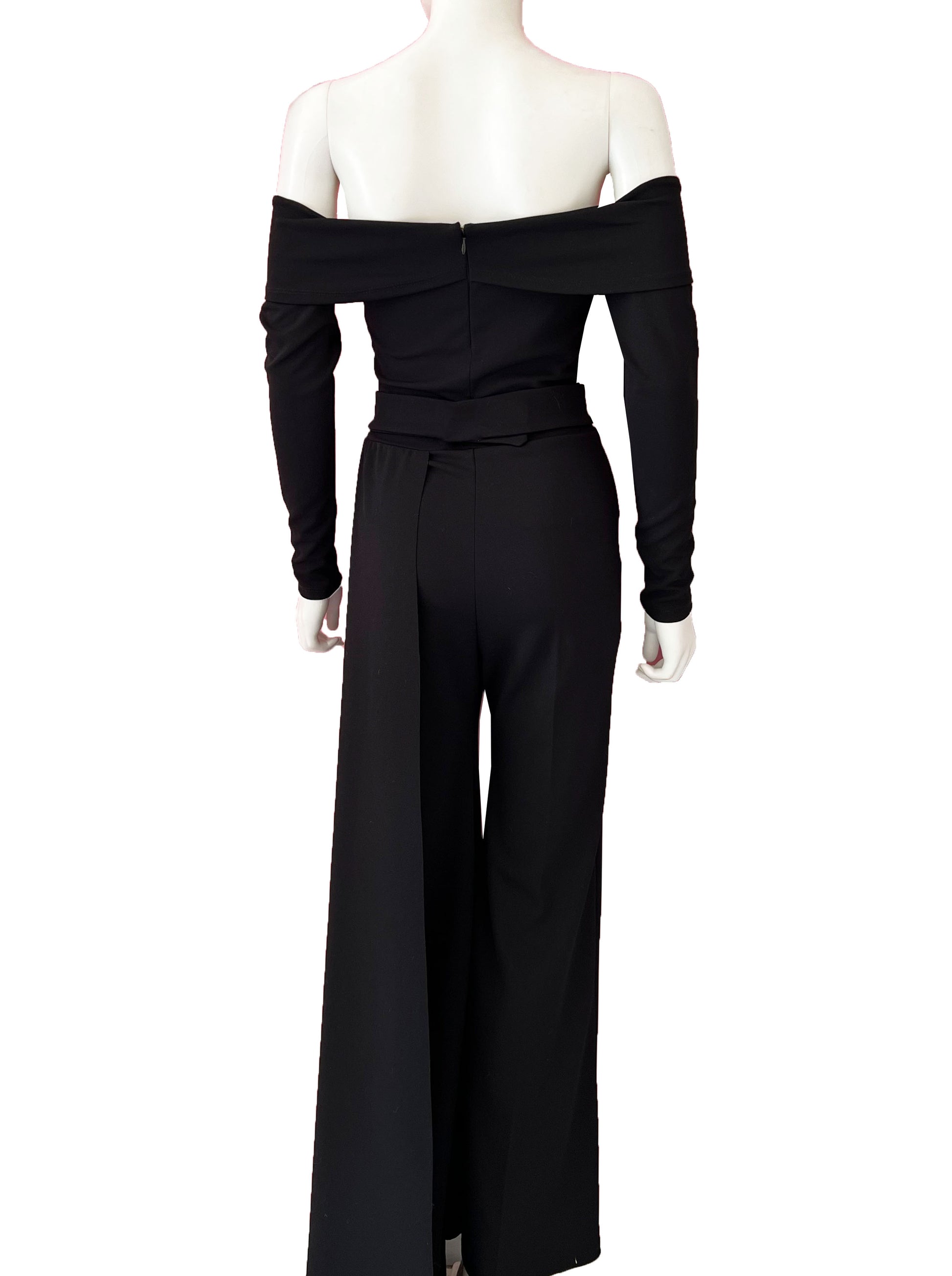 Palazzo con hombros descubiertos y detalle de cauda lateral y cintillo.