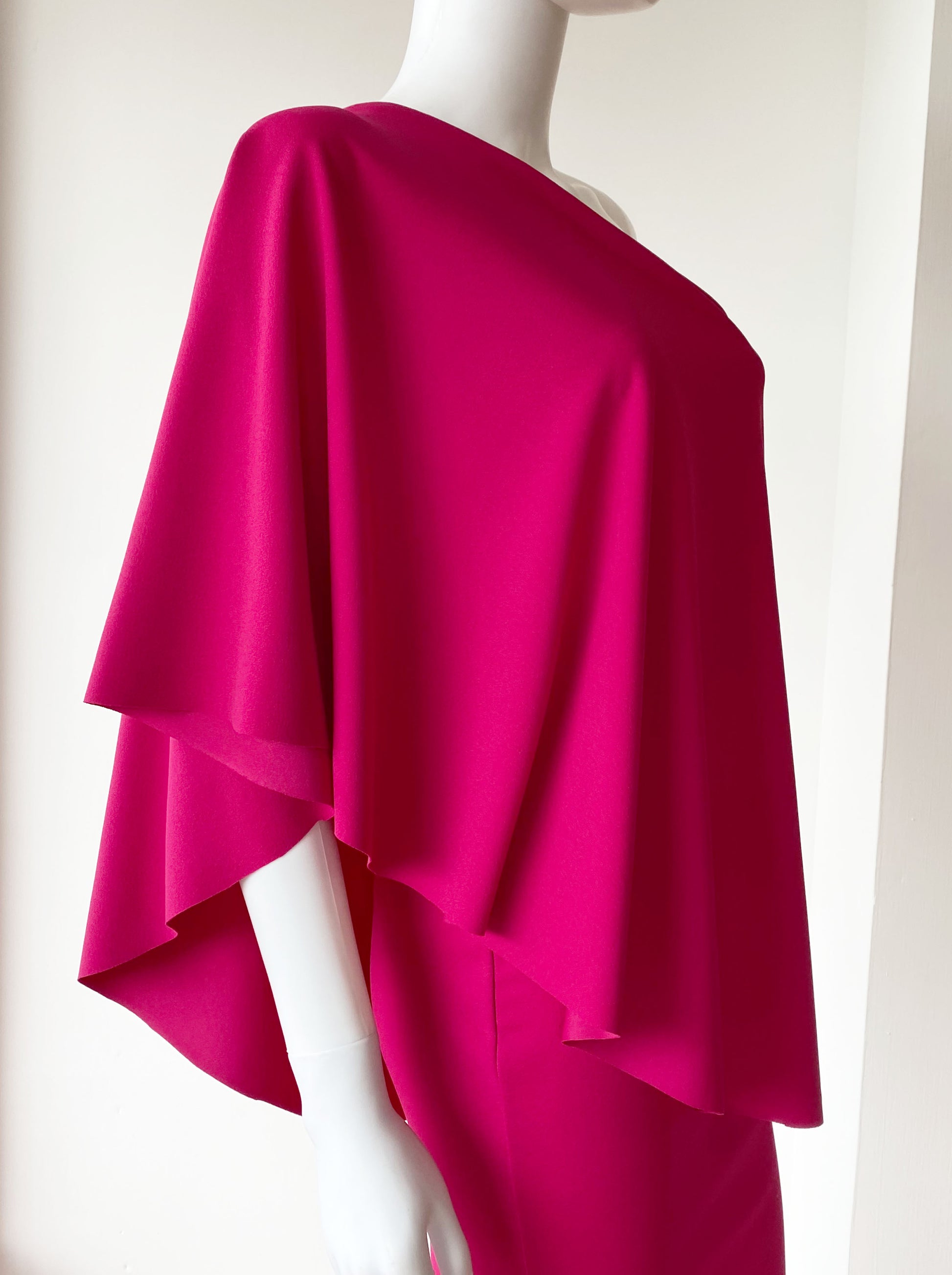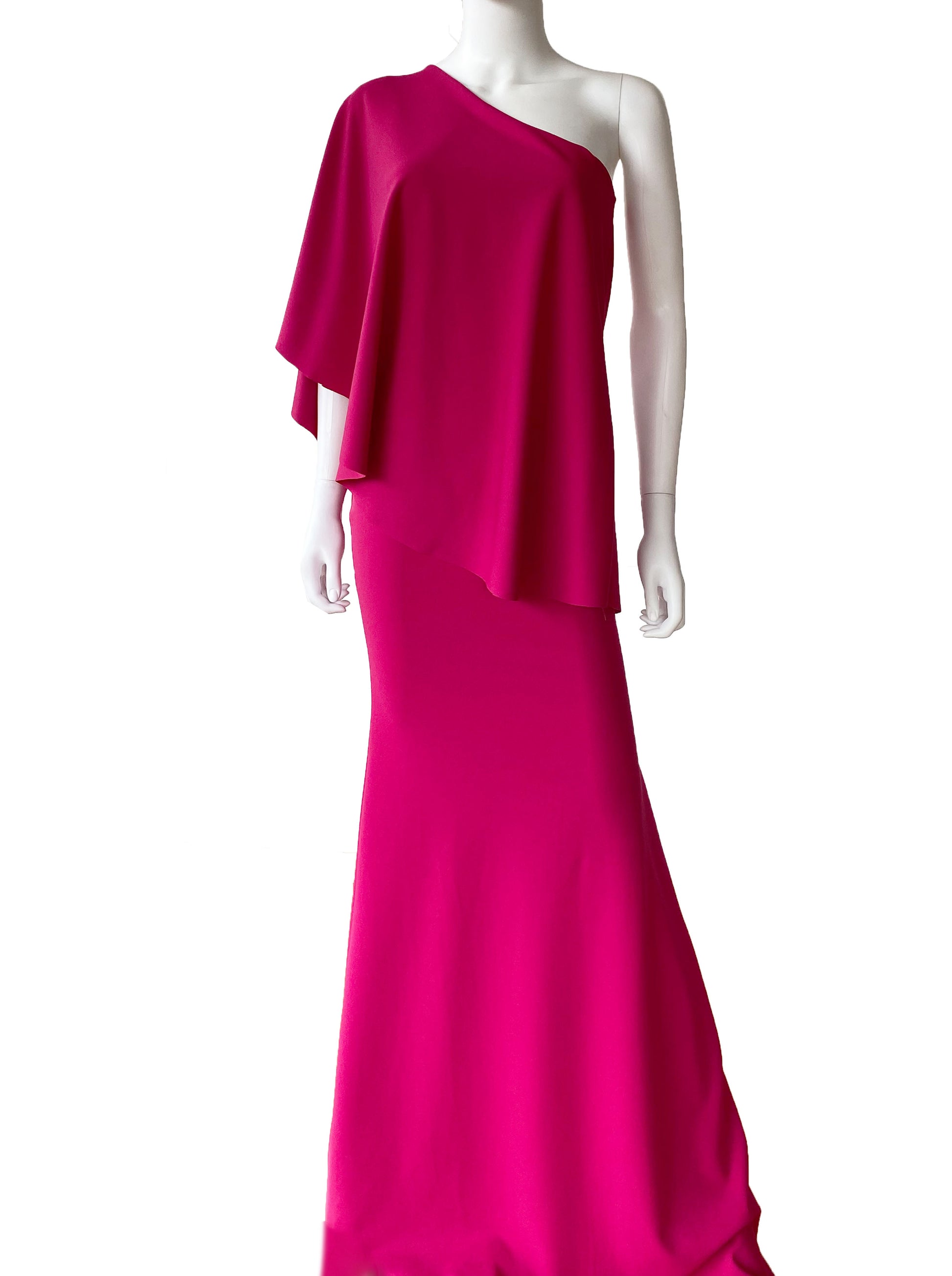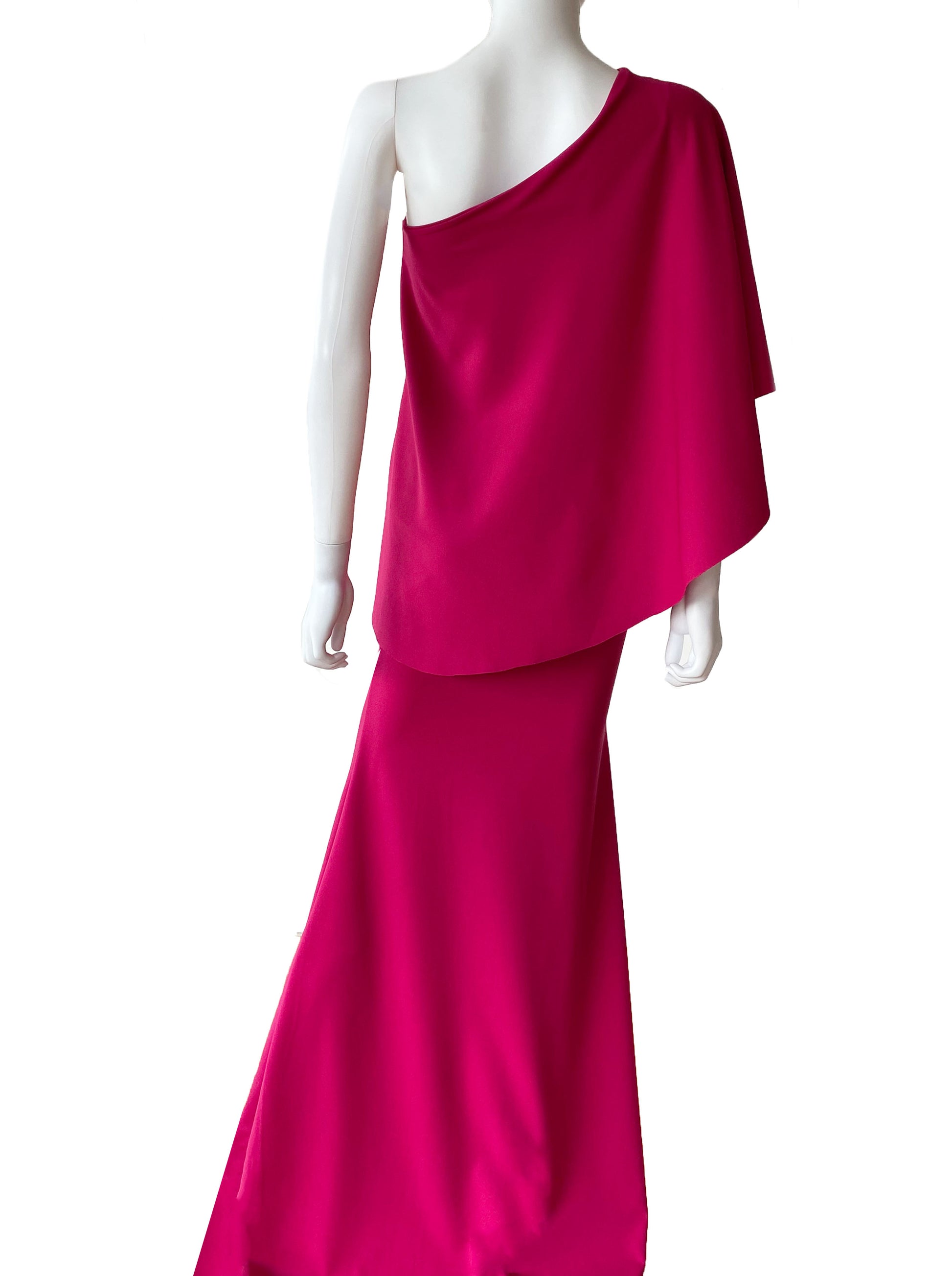 Vestido color rosa con detalle de olán oversize en un hombro.