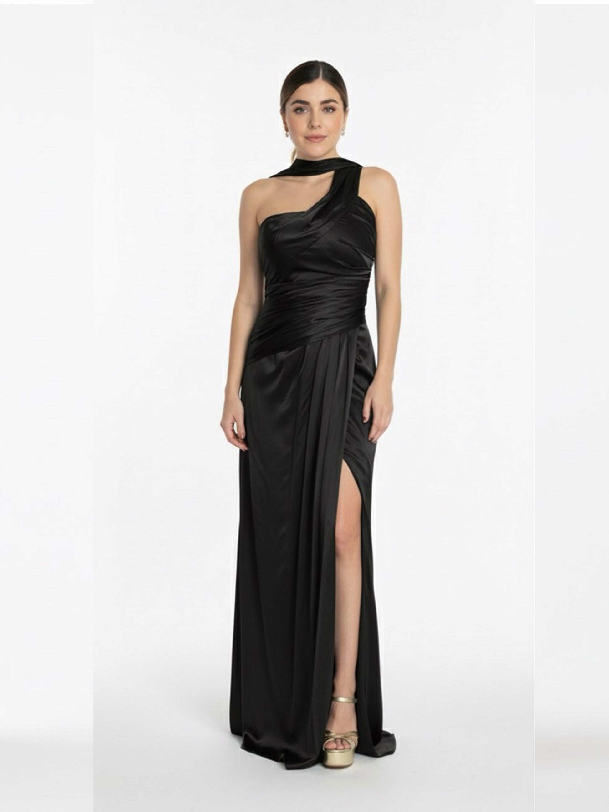 Vestido drapeado colgante en cuello negro