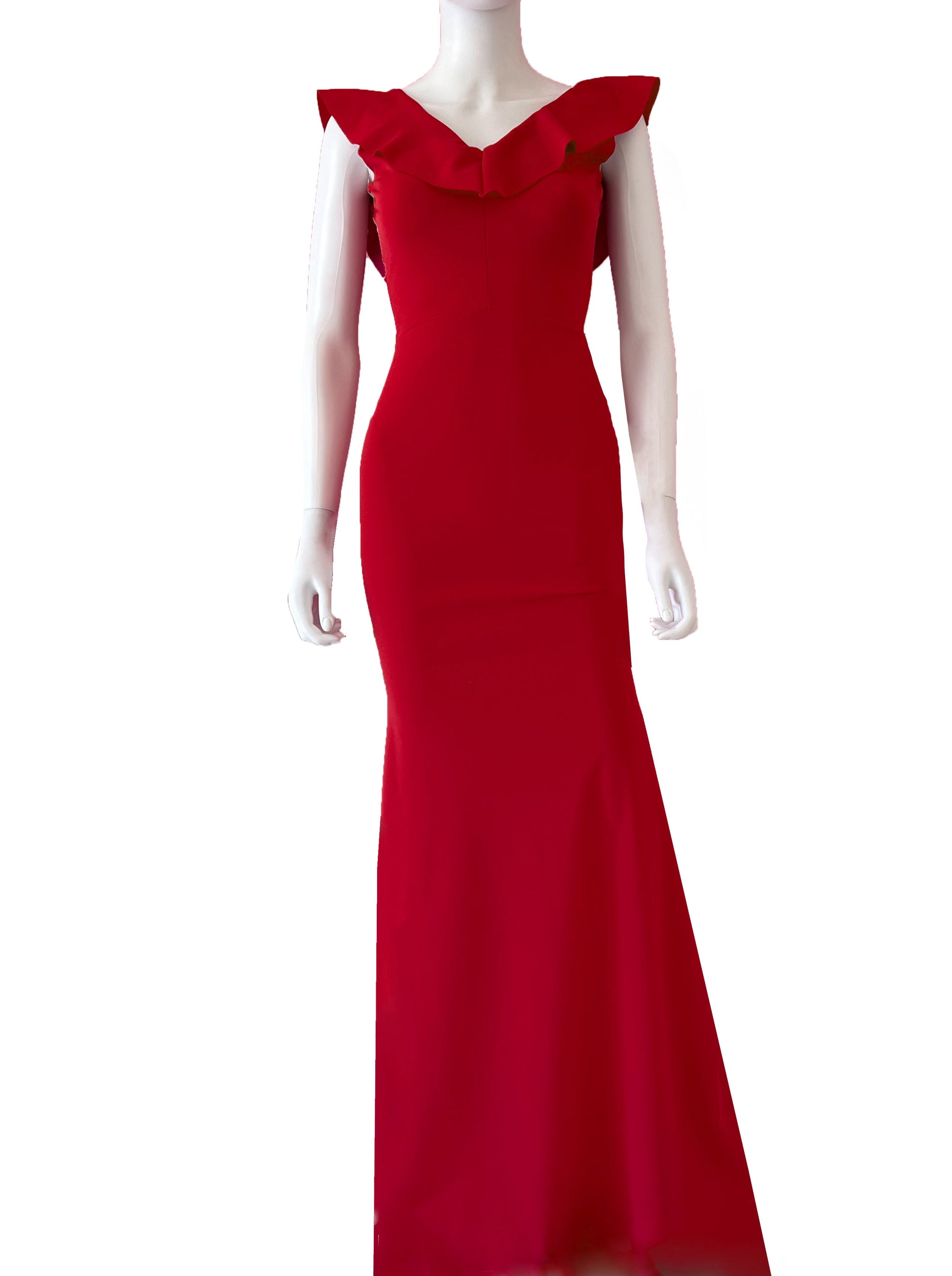 Vestido con detalle de escarolas en la parte de atrás y detallen v en espalda