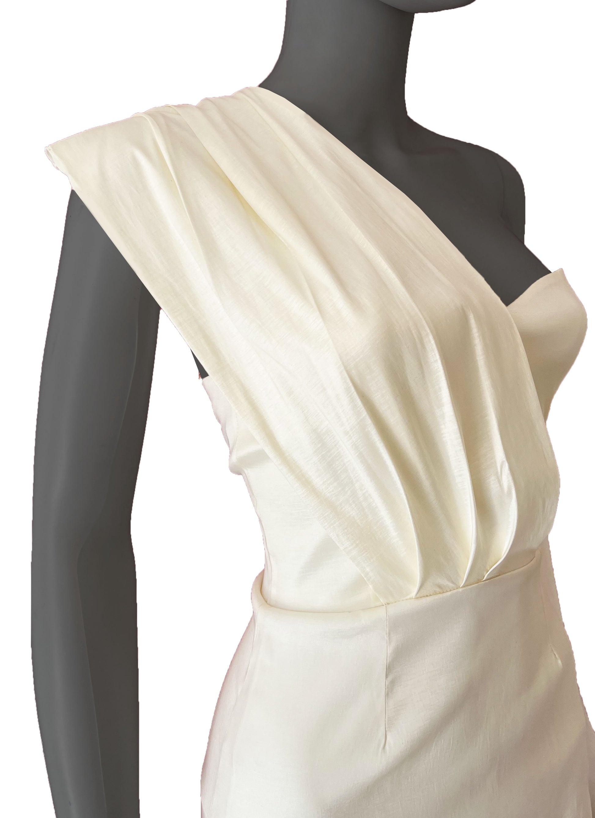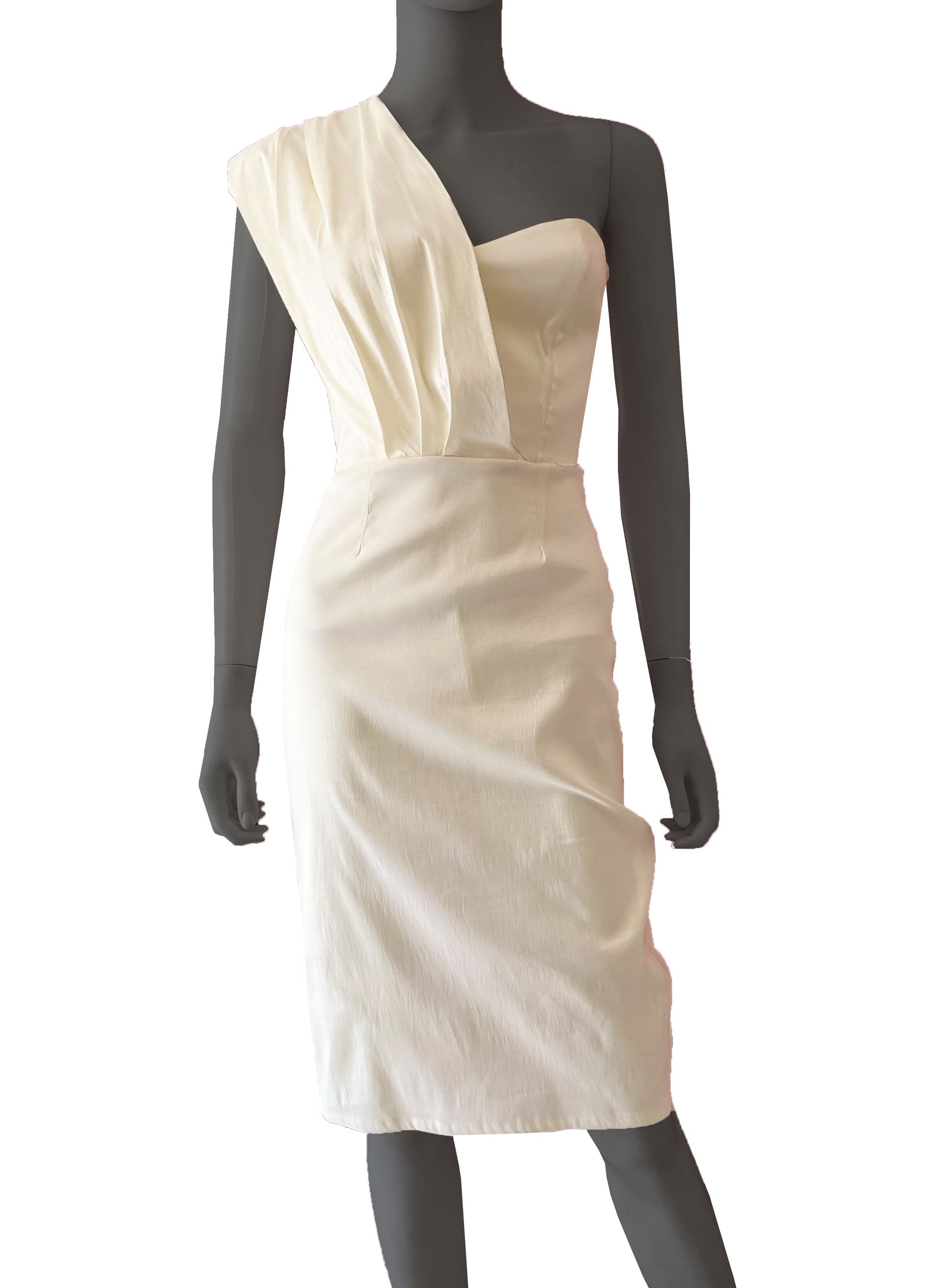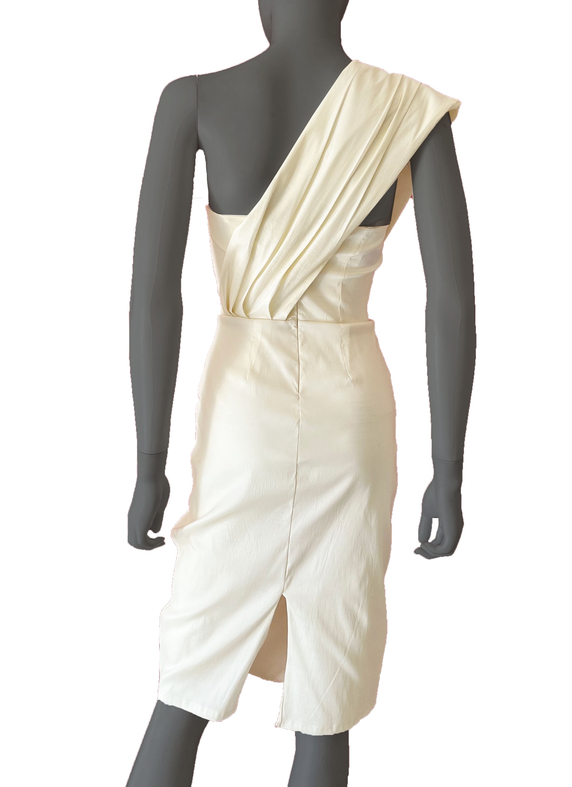 Vestido midi falda lápiz abajo de rodilla , strapless con pieza de un lado.