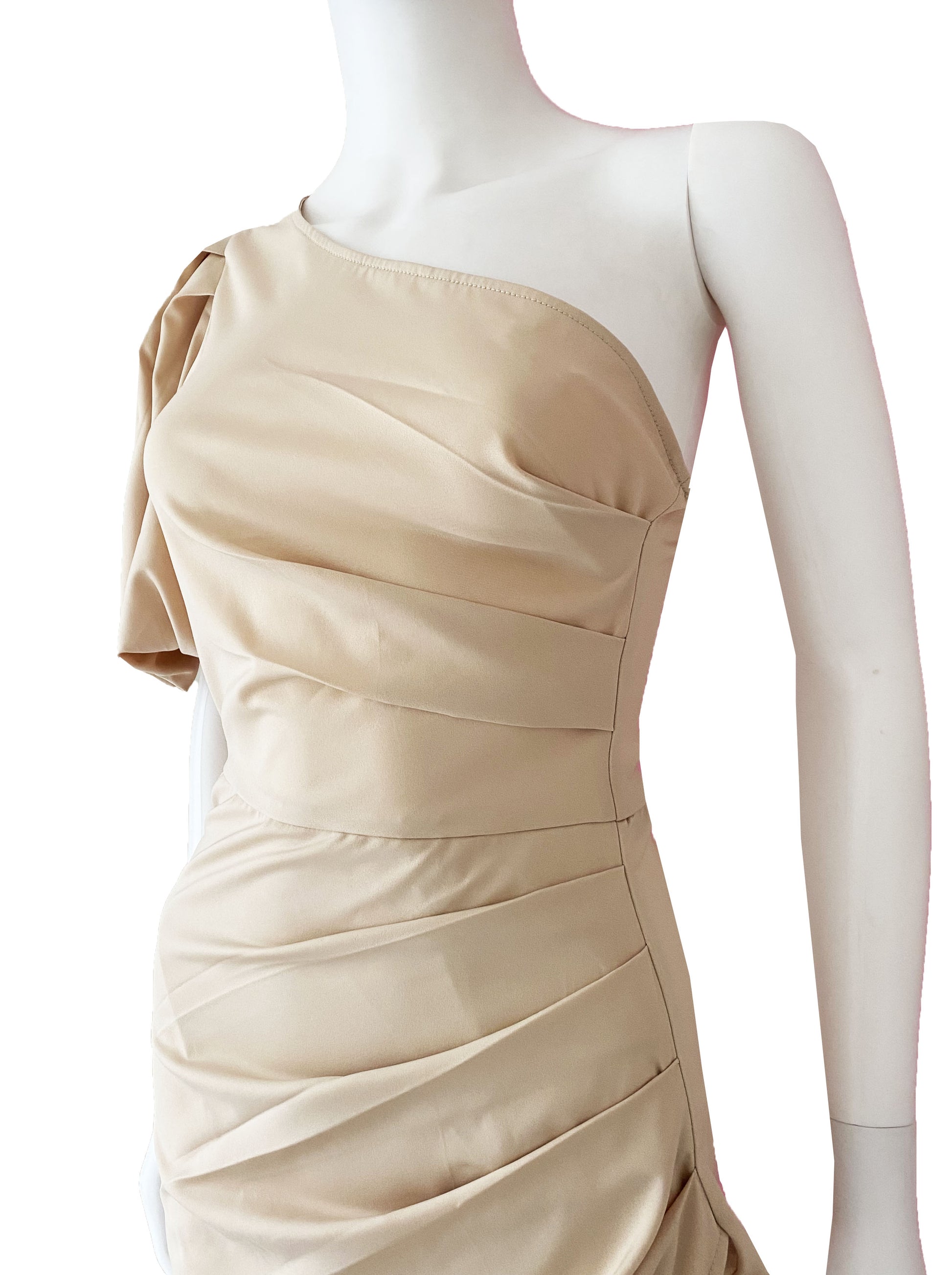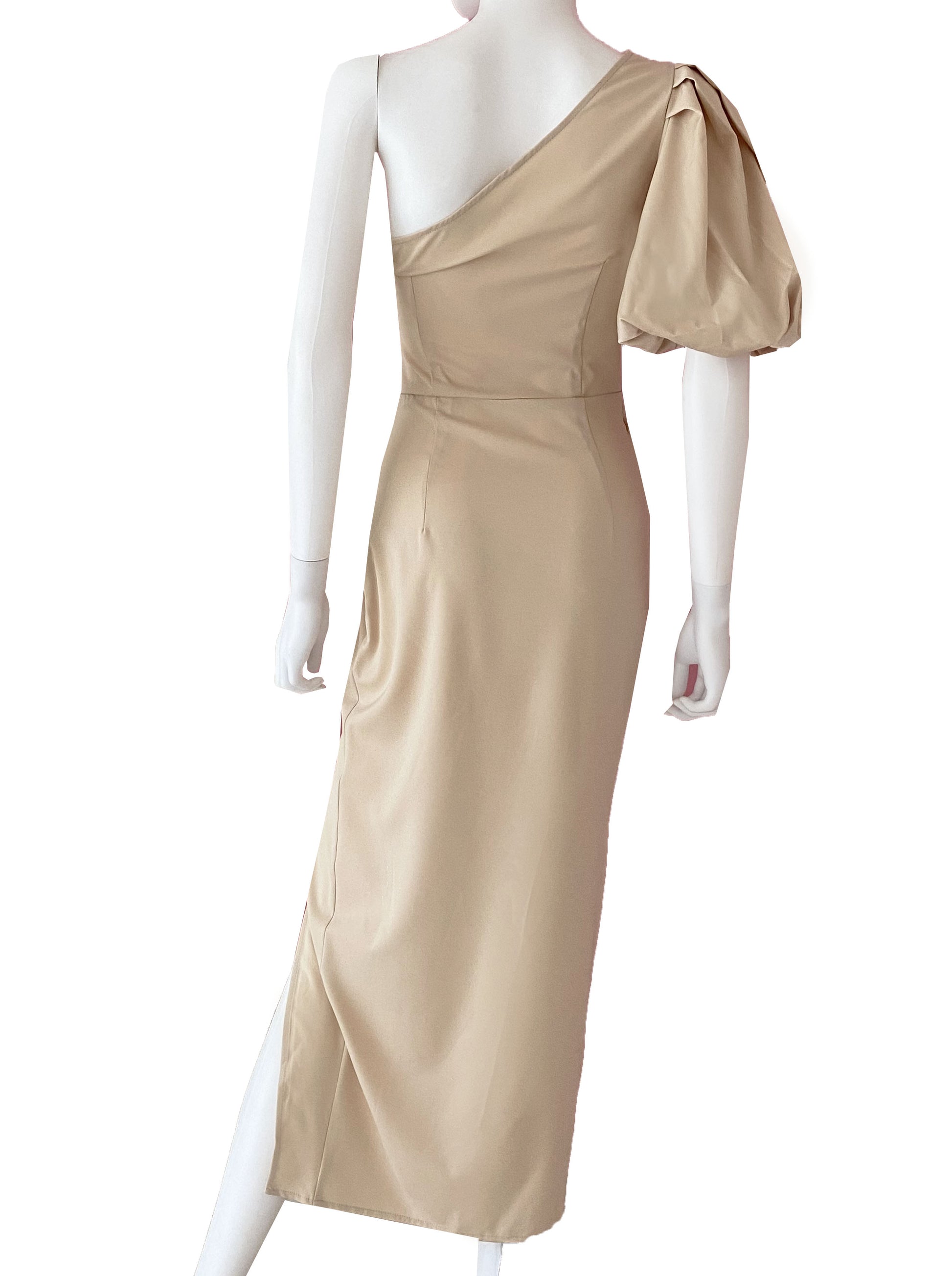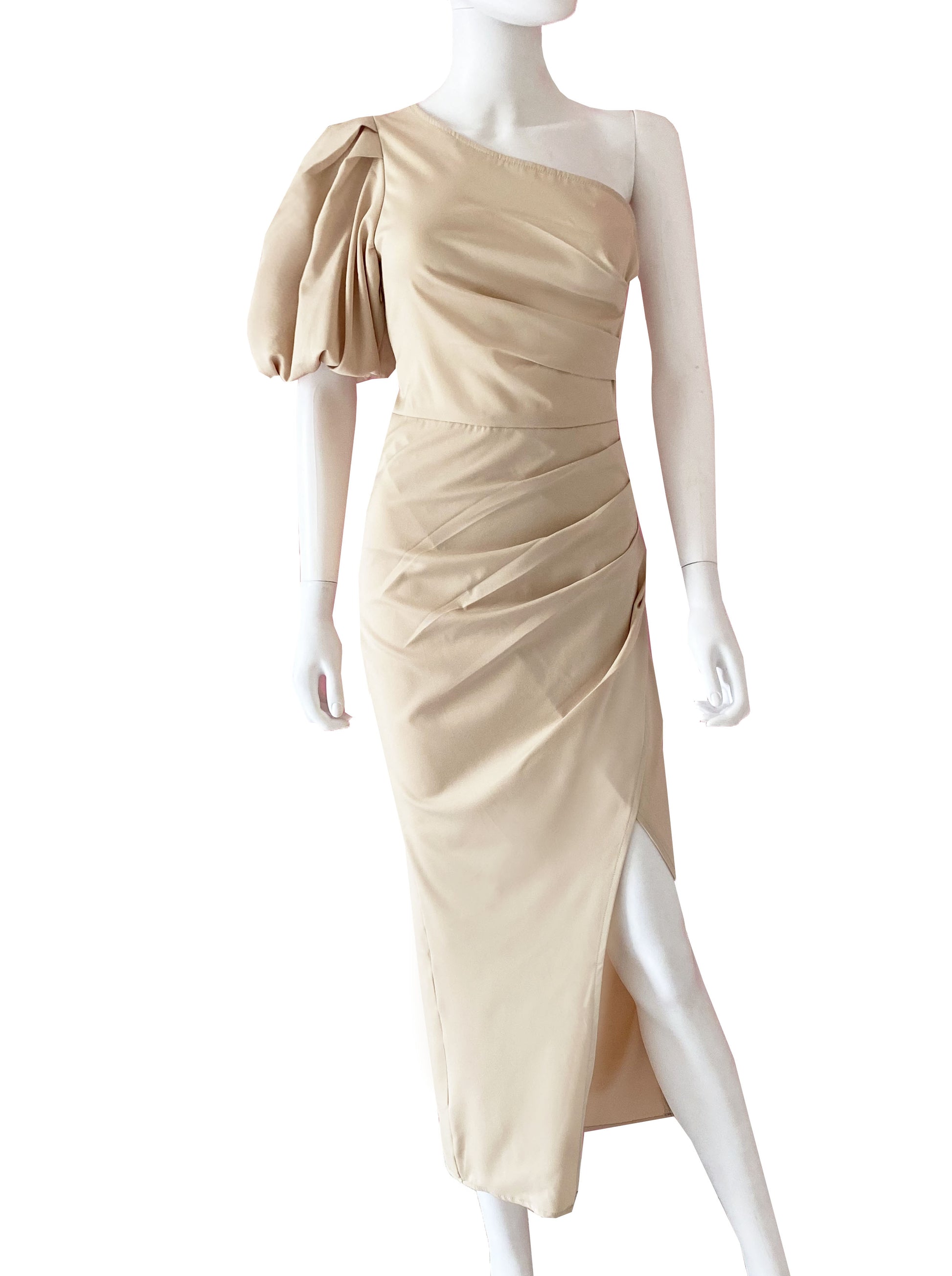Vestido con detalle de drapeado en un costado y manga con volumen