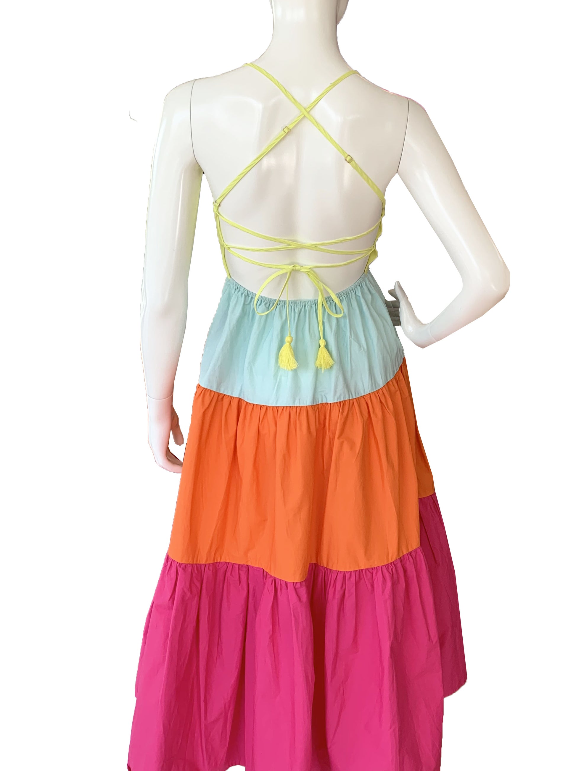 Vestido de colores con detalle de espalda descubierta y lazos cruzados