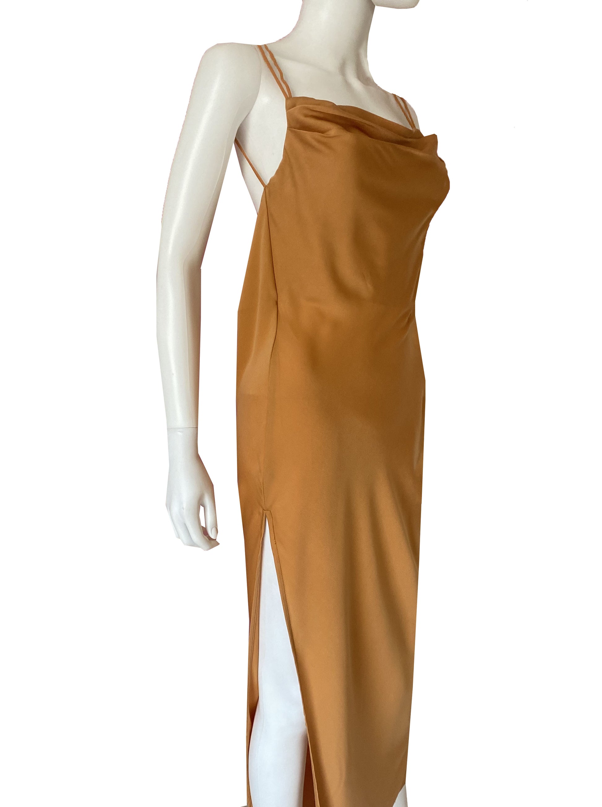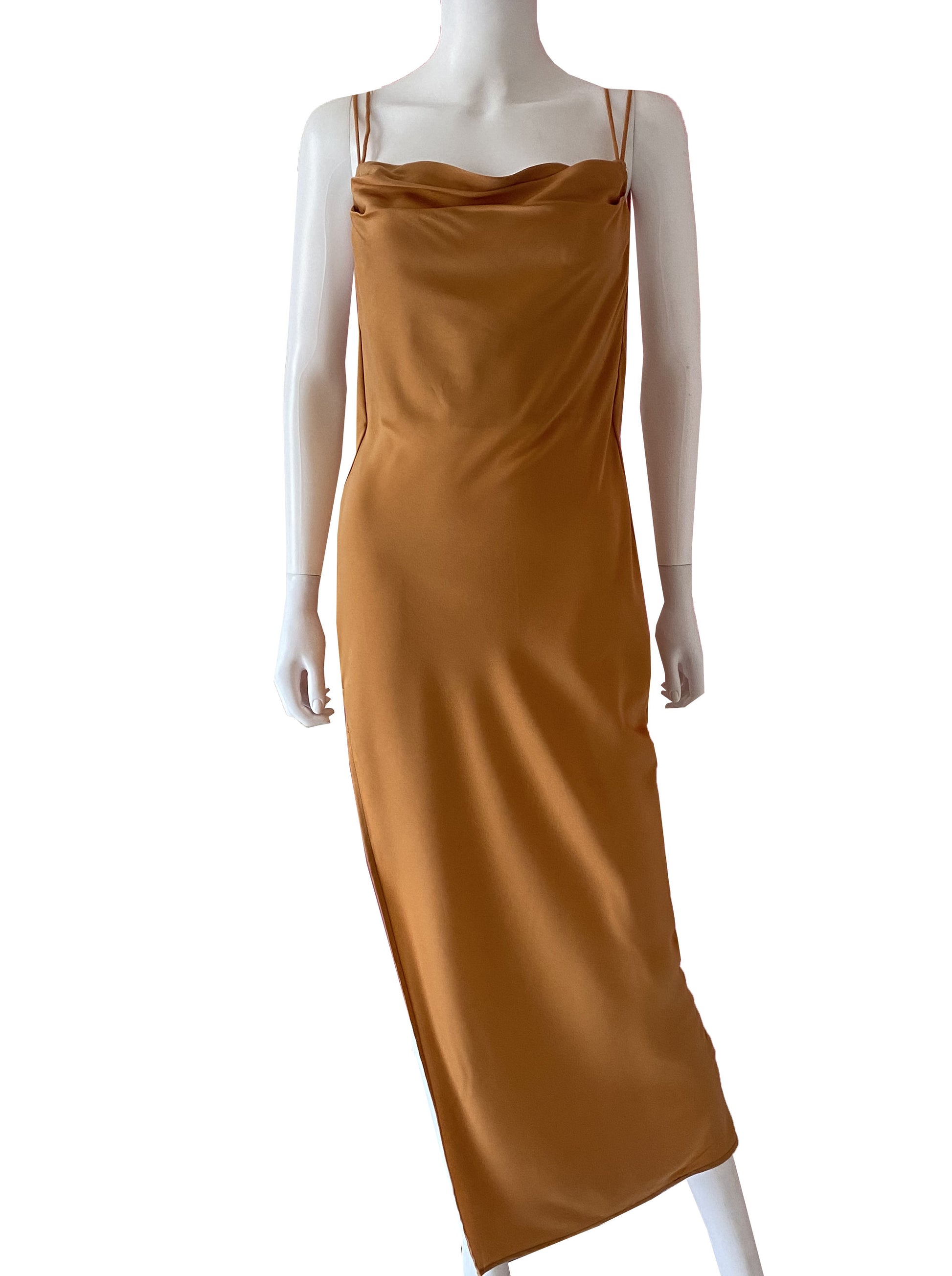 Vestido satén straps chedrón.