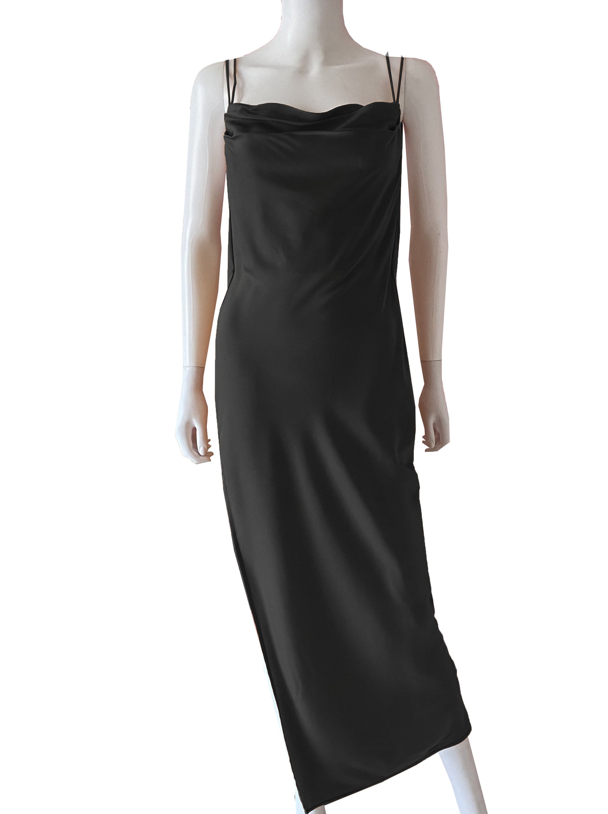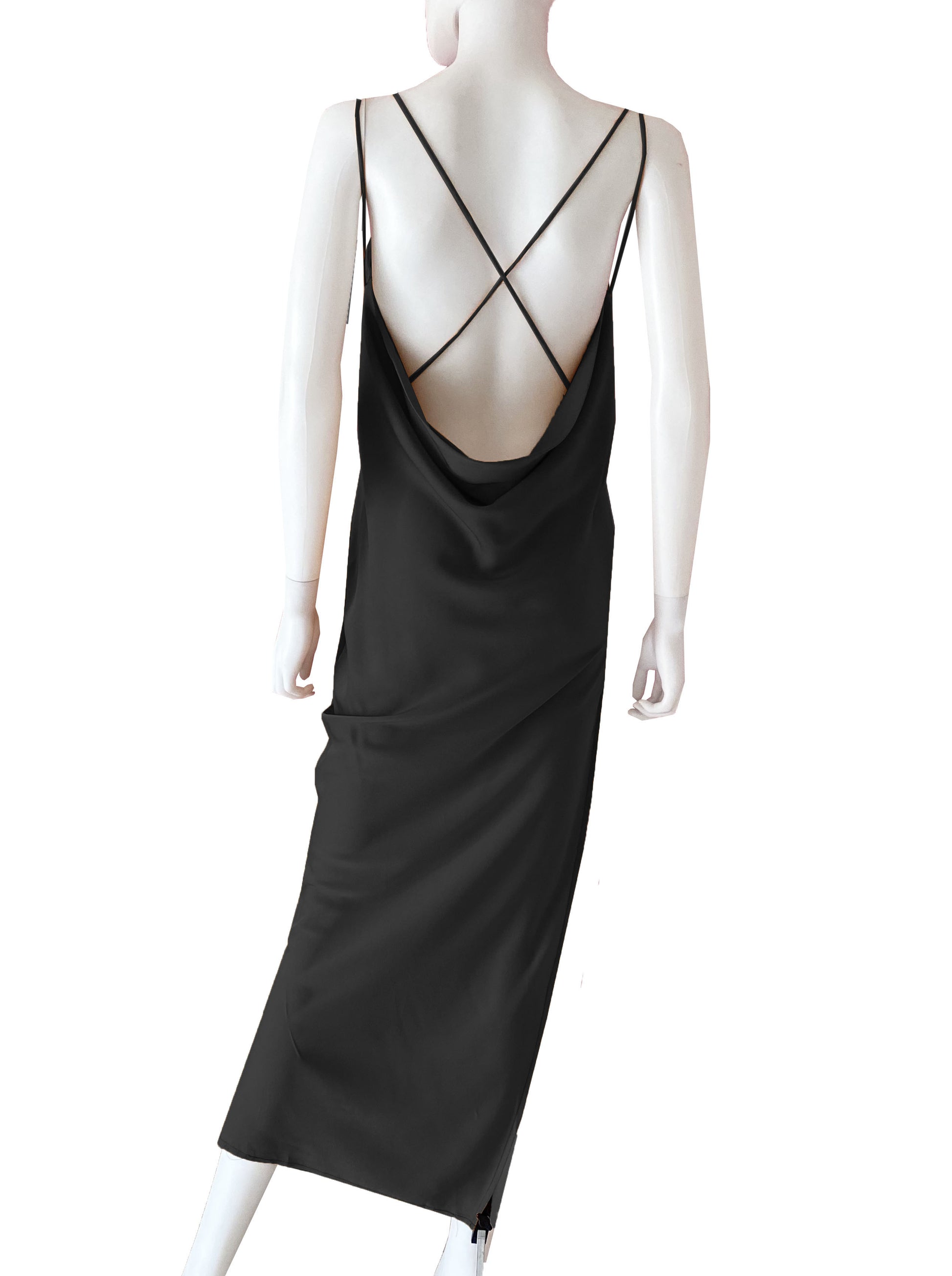 Vestido color negro con detalle de tirantes cruzados en espalda.